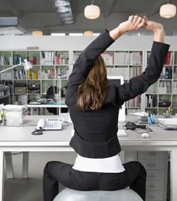 7. Делайте фитнес-перерывы. Вместо того чтобы праздно ходить с кофе или перекусом, совершите быструю прогулку или сделайте мягкую растяжку. Например, голова прямо, затем опустите свой подбородок на грудь. Затем потяните свою левую руку поперек туловища и потяните ее правой рукой, как над, так и под локтем. Или, стоя прямо, затем дотянитесь за спиной и схватите одну из своих лодыжек или свою штанину и подтяните ее к вашей ягодице. Делайте каждое растяжение по 15-30 секунд.