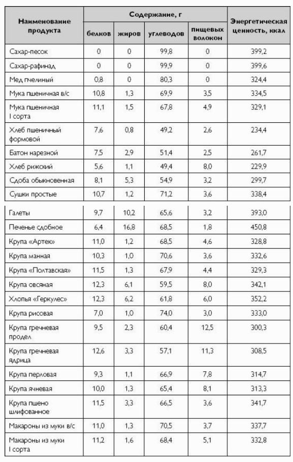 Содержание крахмала в г на 100 г съедобной части продктов: