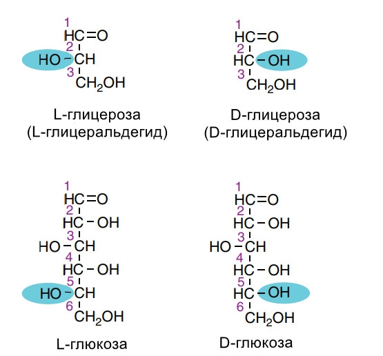 Соединения, имеющие одну и тоу же структурную формулу, но различающиеся по пространственной конфигурации, называются стереоизомерами. Глюкоза с 4 ассиметричными атомами углерода может формировать 16 изомеров.