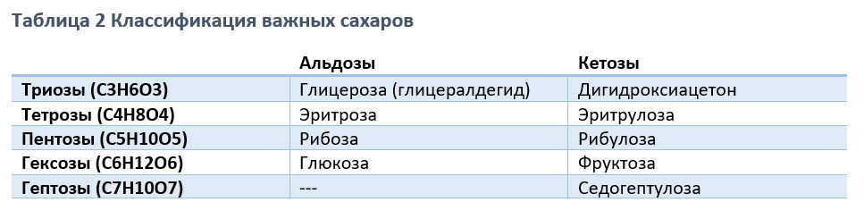 1) Моносахариды - это сахара, которые не могут гидролизироваться на более простые углеводы. Они могут классифицироваться на триозы, тетрозы, пентозы, гексозы или гептозы, в зависимости от количества атомов угерода (3-7) и альдозы или кетозы, в зависимости от того, имеется у них альдегидная или кетонная группа. К альдегидам и кетонам, выделяют еще многоатомные спирты (сахарные алкоголи или полиолы), в которых альдегидная и кетонная группа замещена на алкогольную, встречается в натуральных продуктах.