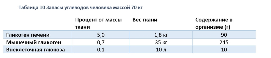 Один час высокоинтенсивной нагрузки снижает уровень печеного гликогена на 55%, а 2 часа напряженной работы почти полностью истощают гликоген в печени и работающей мускулатуре.