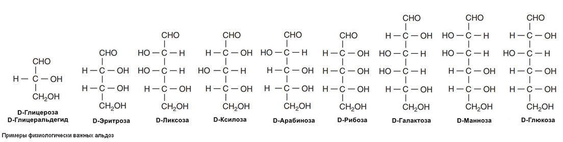 Биологически важные кетозы и альдозы изображены на рисунках снизу.