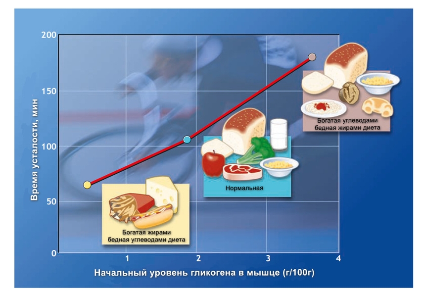 Эффект диеты на запасы гликогена в мышечной ткани и выносливость