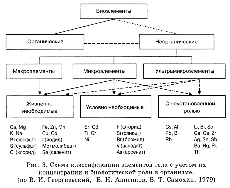 Согласно этой классификации, минеральные элементы, обнаруженные в организме делят на три группы: