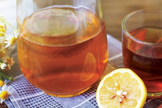 Чайный гриб (комбуча) - это ферментированный чай смешанный с сахаром, бактериальной культурой и дрожжами. 8-унцивоый стакан (240 мл) содержит около 30 ккал. Полагают, что он имеет пользу для здоровья, и возможно даже помогает в снижении веса. Но ученые еще изучают это.