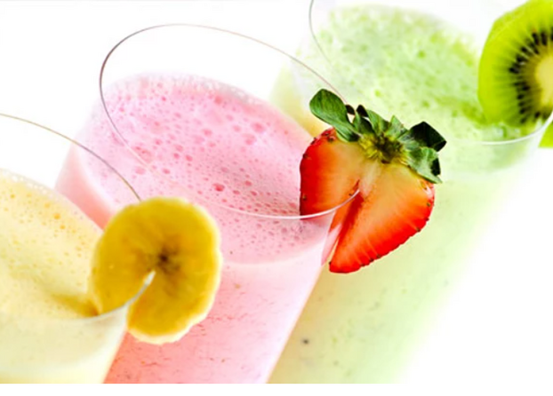 Смешав банан, клубнику и чернику вы получаете пенистый смузи и вкусный напиток. Делайте его сами - таким образом вы сможете контролировать ингредиенты: обезжиренное молоко (или альтернативу ему, например, миндальное молоко) и свежие или замороженные фрукты – это все, что вам необходимо. Ресторанные смузи могут содержать мороженое, мед или другие подсластители, которые поднимают уровень калорийности напитка до уровня небоскребов.