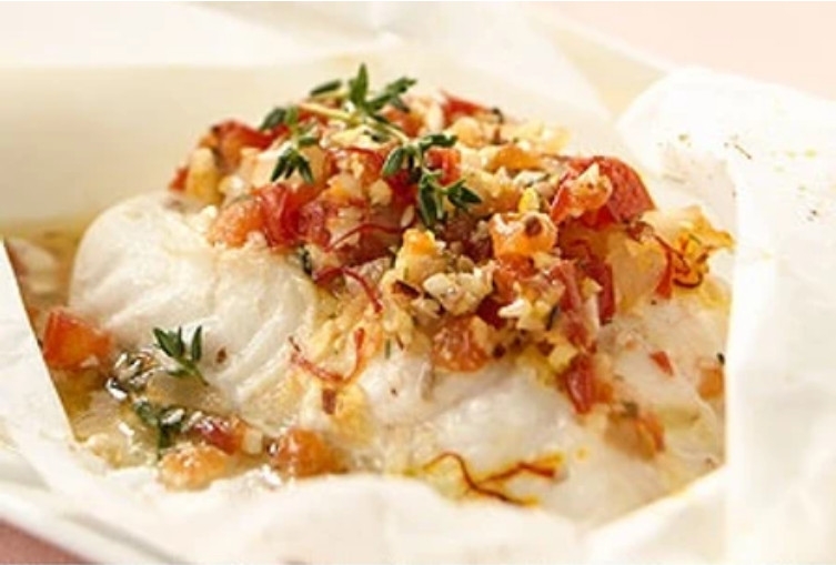 Очень легко и вкусно готовить рыбное филе в конвертах из пергаментной бумаги, техника называется en papillote. Рыба готовится в запертом пару. Если у вас нет пергаментной бумаги, используйте алюминий, чтобы сделать кармашки. Готовьте 10-15 минут при температура 400 F (204,44 С).