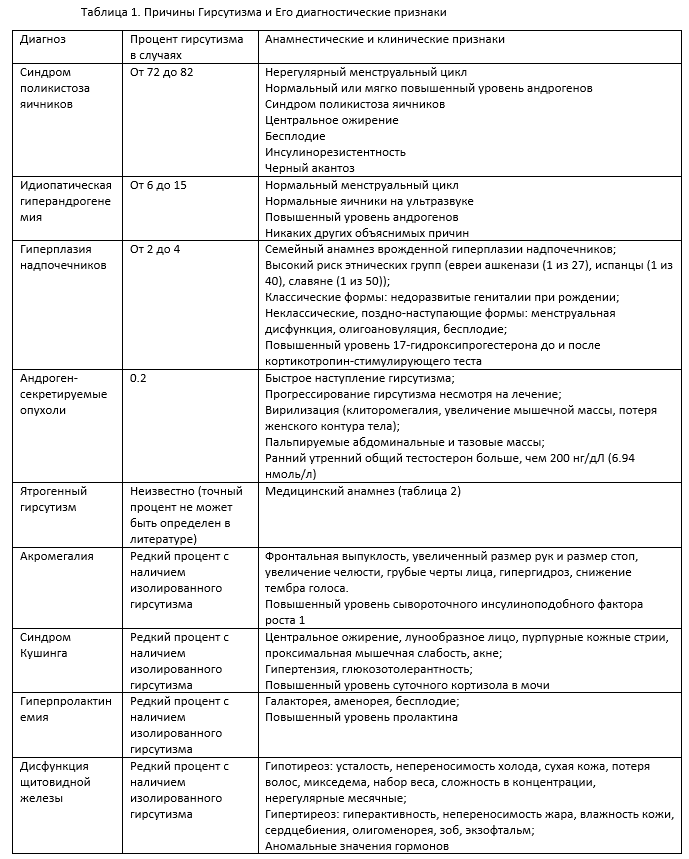 В 20% случаев причину гирсутизма и повышенного тестостерона выявить не удается (идиопатическая гиперандрогения). Примерно в 4-7% случаев гирсутизма тестостерон в норме (идиопатический гирсутизм).