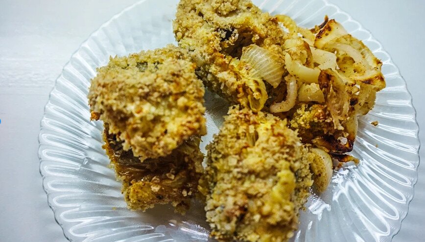 4. Откидывает на бумажное полотенце чтобы впитать остатки масла и откладываем.